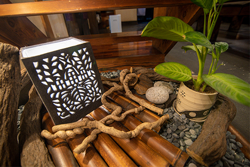 東北地方の古民家を参考に、奥行きのある開放感あふれる空間を店内に作りました。なんとなく懐かしい雰囲気が心に癒しをもたらせてくれるかもしれません。