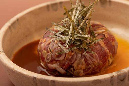 新鮮な魚介と納豆を叩いて特製のたれで和えた逸品。