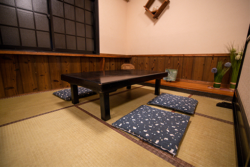 店内奥にある襖(ふすま)で仕切られたお座敷席。